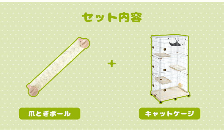 ページトップへ スペース仕様 サイズ ケージ:外寸:幅90×奥行62×高さ167cmポール:外寸:幅10.5cm×奥行8×高さ53cmポール直径8cm 【スタッフひーちゃんのおすすめポイント!】 ・2匹飼いにも対応!広々3段キャットケージ ・好きな場所にカンタンに取り付け可能な爪とぎポールセット! ・中でいっぱい運動出来る3ステップ ・ステップは全段爪研ぎが出来る麻シート仕様 ・ゆったりくつろげるハンモック ・どこからでも出し入れ出来る6箇所扉&天井扉 ・扉は安全なロック式 ・移動らくらくキャスター付 重量 ケージ:約22kgポール:約0.6kg 耐荷重 ステップ(1段あたり):約20kg ハンモック:約20kg 素材 フレーム:スチール 取手:ABS ステップ・ジョイントパーツ:PPポール:PP、麻 取手のカラー ベージュ、ブラウン 梱包サイズ ・88×11×56cm ・97×11×67cm ・20×20×60cm 生産国 中国 送料 【送料無料(北海道・沖縄・離島は別途)】 備考 【組立品(約20〜30分)】【販売開始日:2020年6月11日】 ※配送は全て宅配便(1人)での玄関渡しとなります。