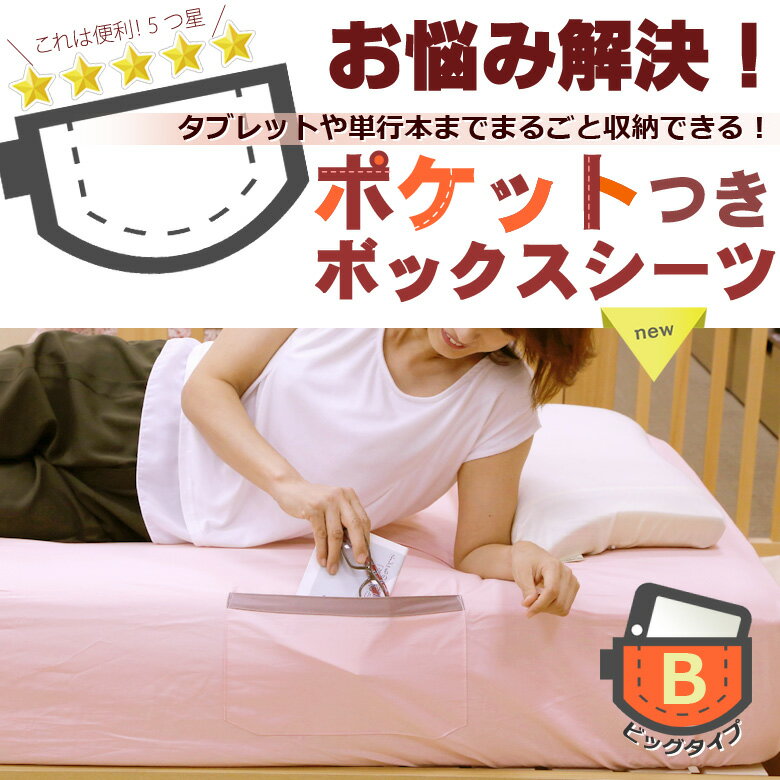 タブレットや文庫本、おむつまで収納できる 大ポケットつき 綿100% 日本製 形態安定加工 ボックスシーツ --- ワイドダブルサイズ --- お休み前に読書されたり、タブレットでメールを確認してからお休みになる方に、赤ちゃんと添い寝されている方は替えのおむつを入れて置いたり、横幅約30cmもあるのでいろんなものが収納できる ポケットがついたベッドマットレスシーツです。