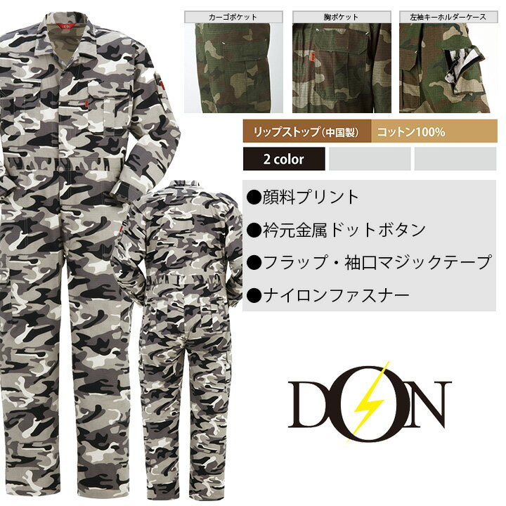 ■ヤマタカ DON オールシーズン カバーオール 5711 ■素材 リップストップ(中国製)、コットン100% ■仕様 左袖キーホルダーケース 胸ポケット 左右カーゴポケット 衿元金属ドットボタン フラップ・袖口マジックテープ ナイロンファスナー 顔料プリント モニター環境により画像の色と現物の色が多少違って見えます。