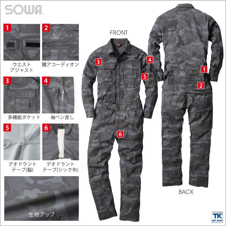 SOWAT/C 迷彩つなぎ 商品の 詳細 マルチに使えるカラーT/Cつなぎ。