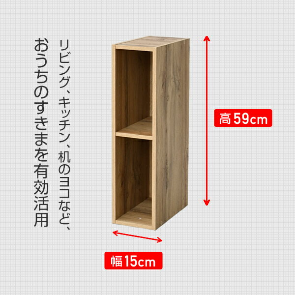山善 YAMAZEN すきま収納 幅15cm カラーボックス 2段 スリムユニット SLU-60152 オーク調 本体サイズ 幅15×奥行29×高さ59cm 重量4kg 材質 本体:プリント紙化粧パーティクルボード 仕様 ●原産国:インドネシア●組立品です●組立時間:約20-30分 商品説明 ●15cmから35cmまでのサイズバリエーションのある、スリムタイプのカラーボックス●おうちの中のすきまを、最適サイズで有効活用●付属金具で最大6段分まで積み重ね可能(サイズ違いの組み合わせもOKで、2-3個分)●内寸: 幅12.5 奥27.5 高さ11-43cm●可動棚1枚(約3cm間隔、11段階高さ調節可能)●内部全体高さ:56cm●耐荷重:1段あたり10kg●連結用金具1セット付属●背面化粧なし 商品補足説明 YAMAZEN ヤマゼン 山善 通販 カラーボックス オープンラック オープンシェルフ 多目的棚,収納ボックス スリム すきま すき間 隙間 棚 シェルフ ラック 洗面所 収納 クローゼット 押入れサイズバリエーション カラーボックス A4対応カラーボックス インテリア ランキング
